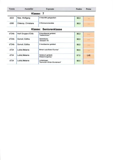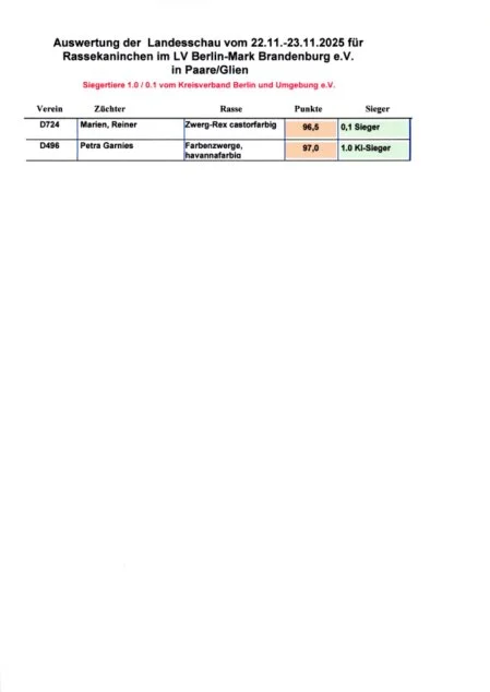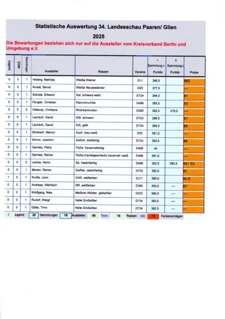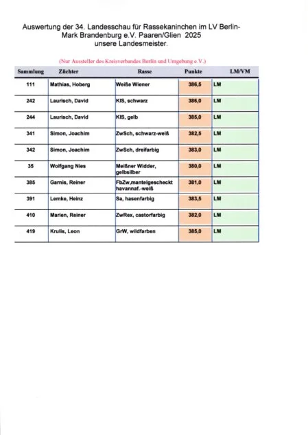 Auswertung der 34. am 22.11.25-23.11.2025 Ausstellung vom Landesverband der Rassekaninchenzüchter